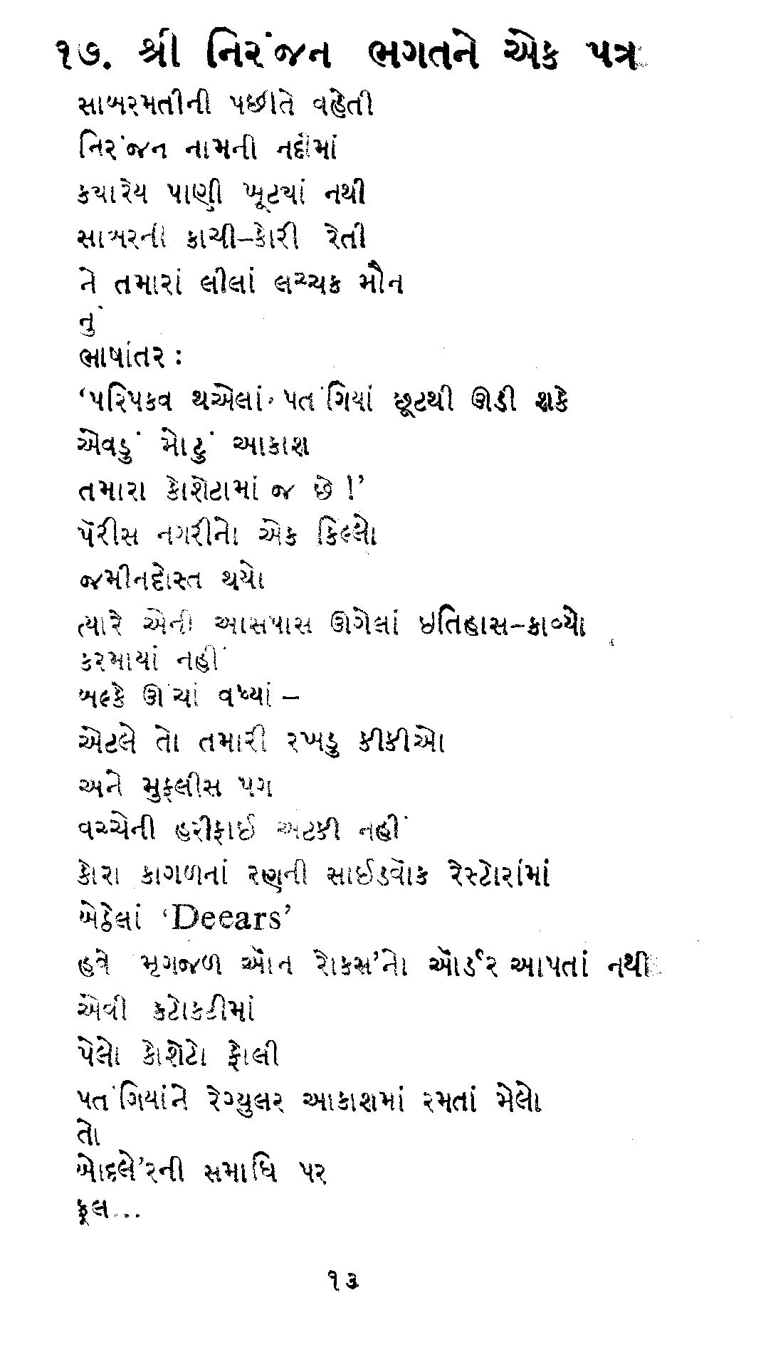 | A letter to Shri Niranjan Bhagat (Poem) શ્રી નિરંજન ભગતને એક પત્ર | More to come... | p | |