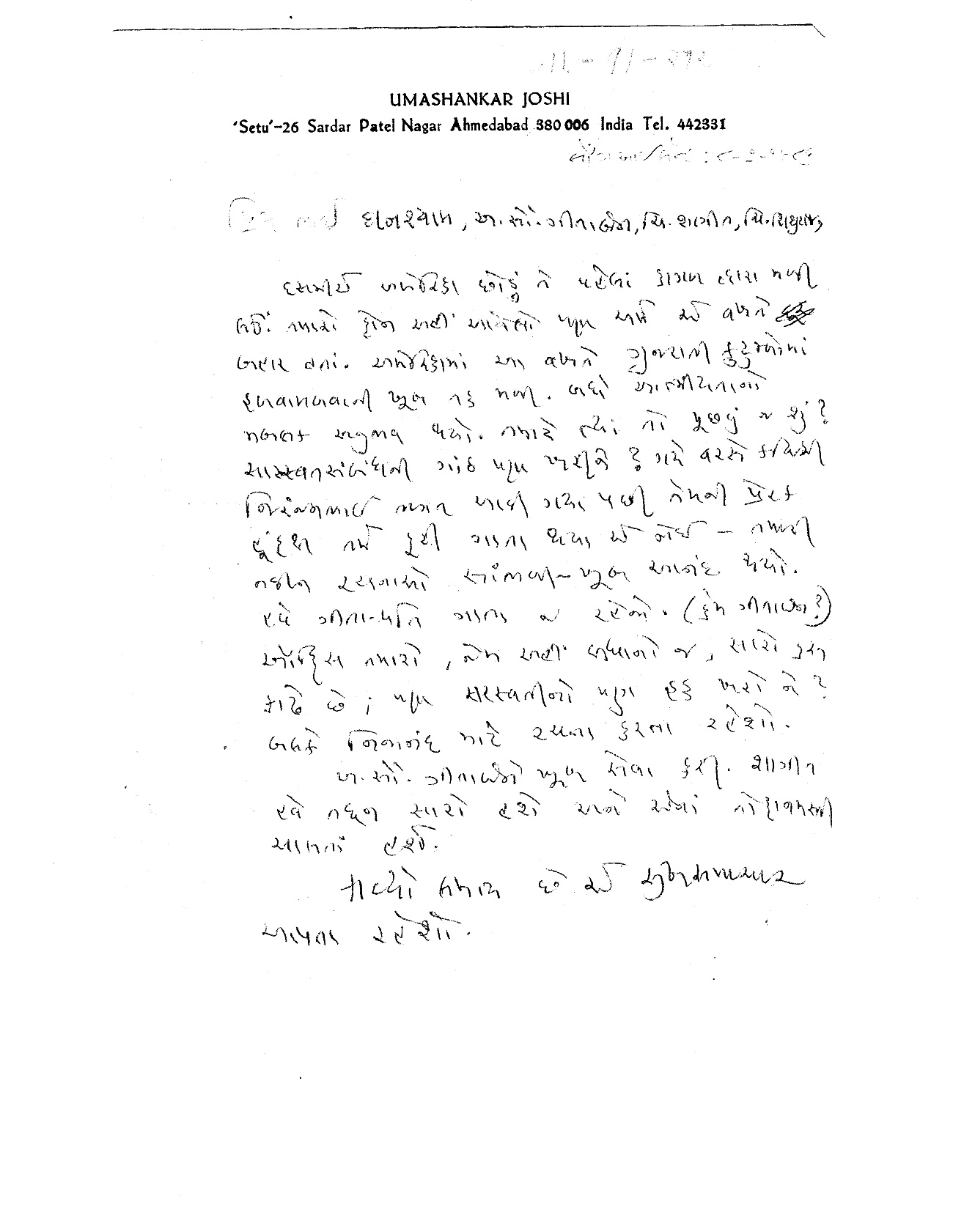 | 'A letter to Shri Labhashankar Thakar' (Poem) | |||