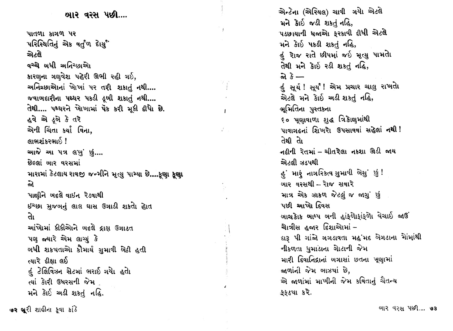 | [Shri Umashankar Joshi: Dedication ] Taras-Varsha PaChhini Ras Varsha (The Rain of Delight after The Rain of Thirst) | |||