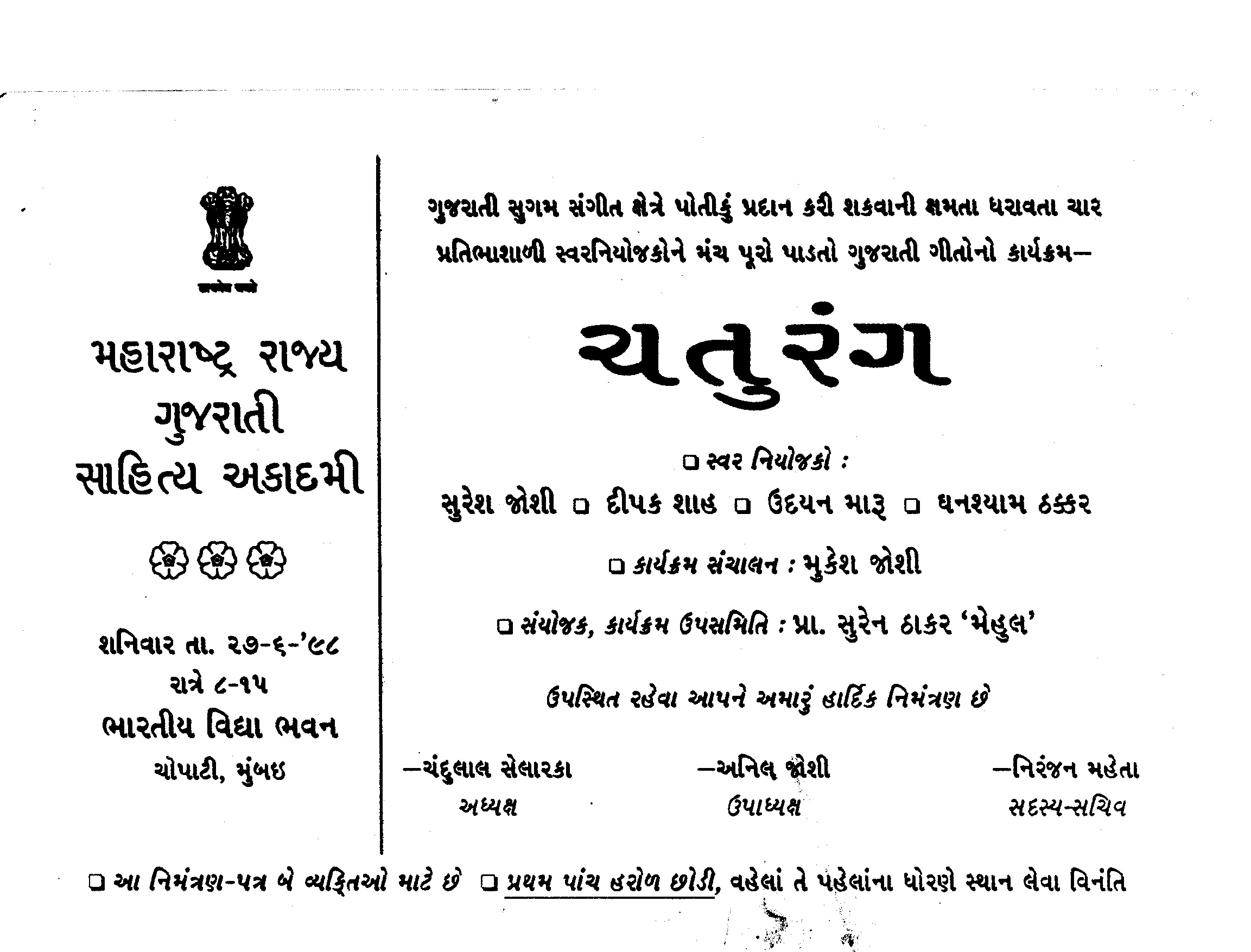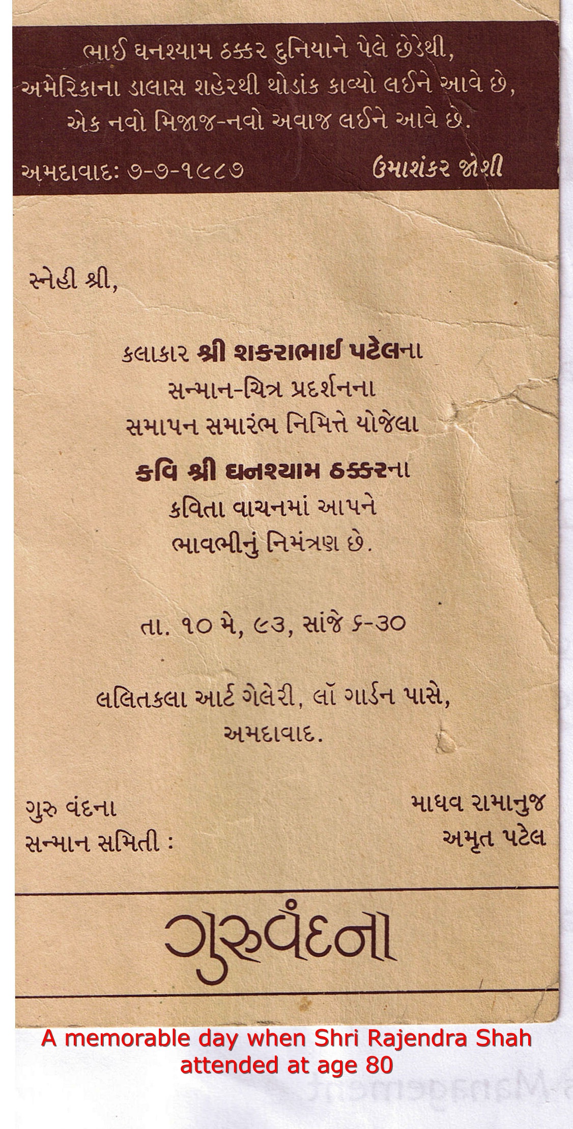 | Mr. Umashankar Joshi in Dallas 1986          | |||||||||||||||||||||